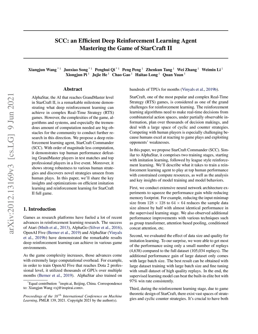 SCC: an efficient deep reinforcement learning agent mastering the game