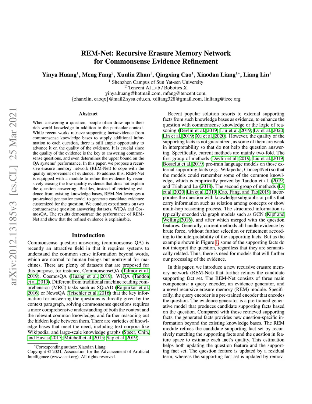 REM-Net: Recursive Erasure Memory Network for Commonsense Evidence