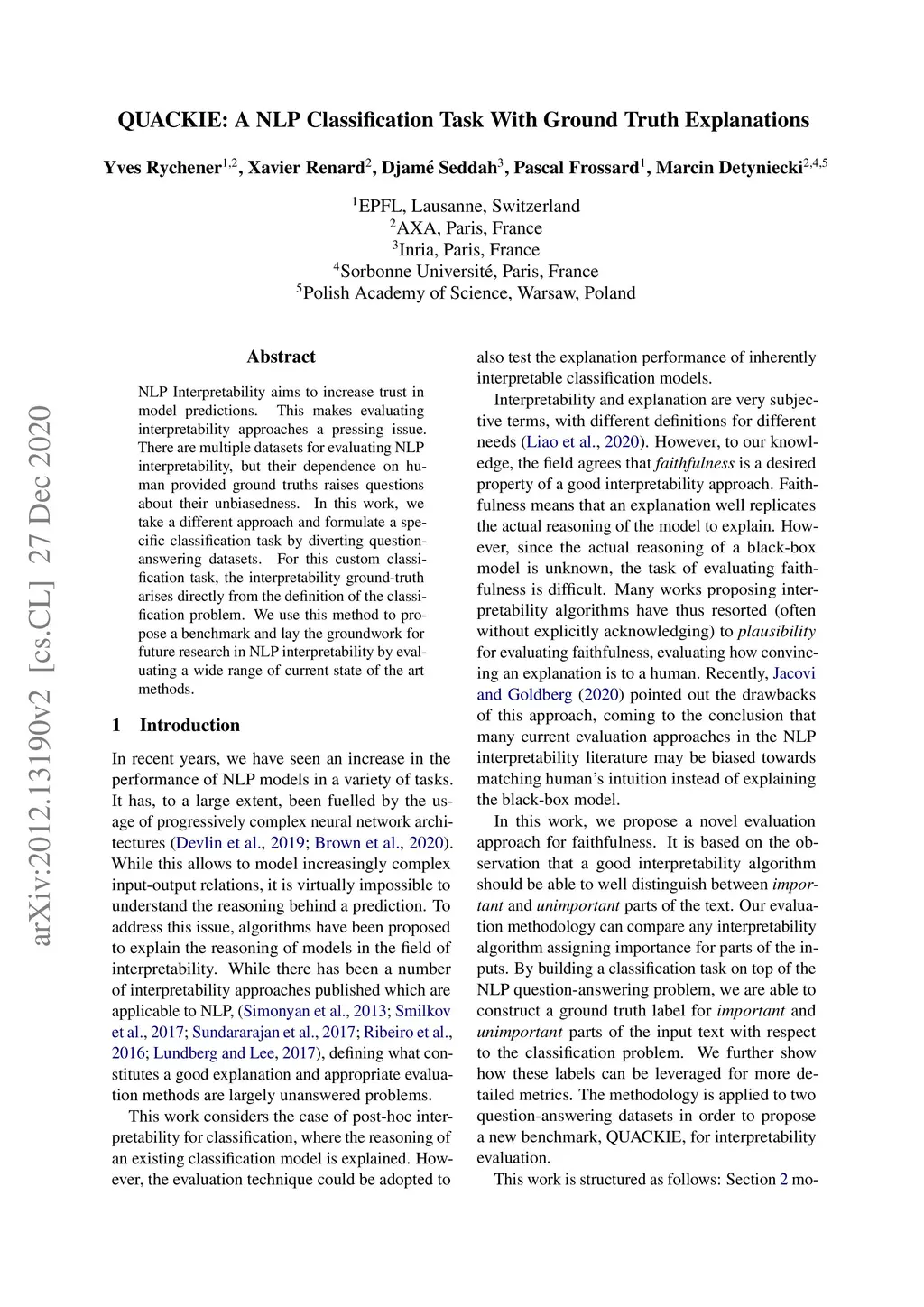 QUACKIE: A NLP Classification Task With Ground Truth Explanations