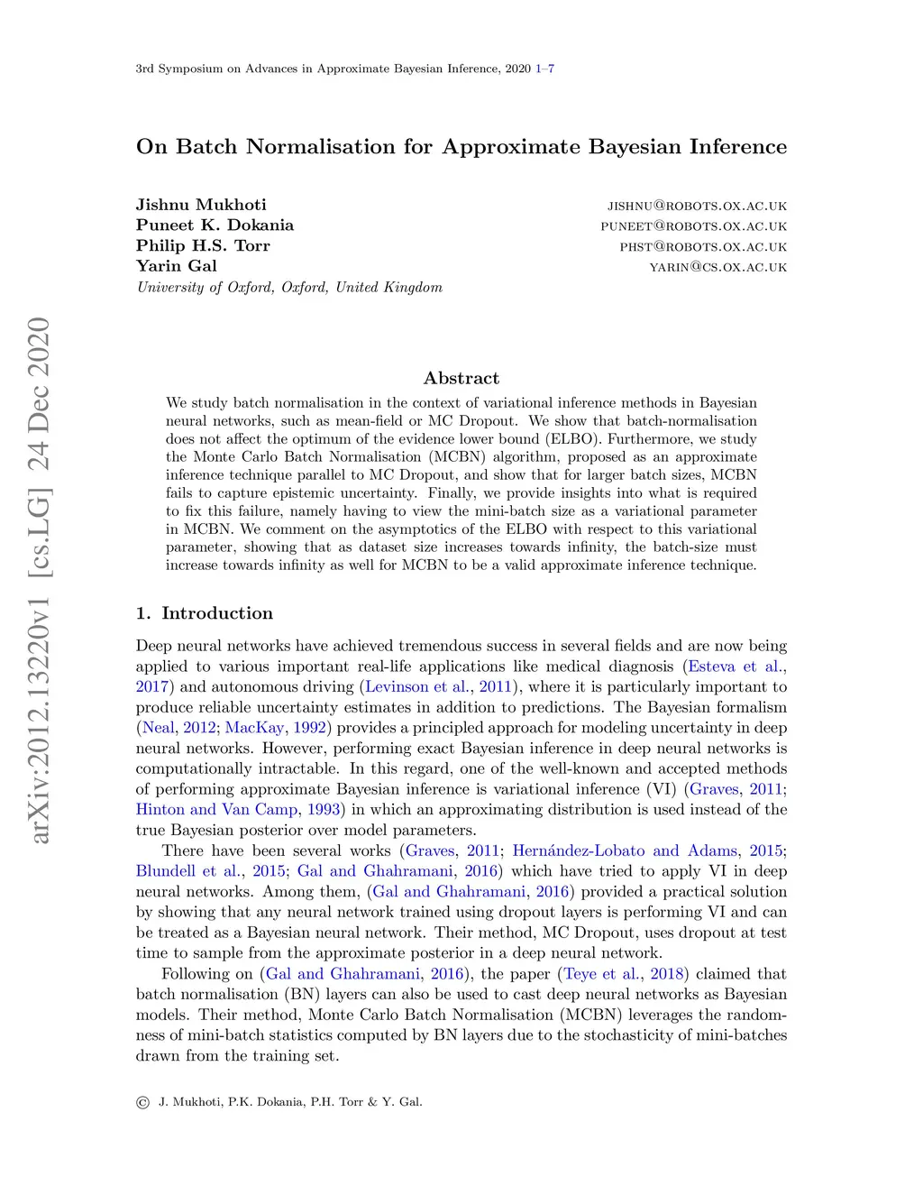 On Batch Normalisation for Approximate Bayesian Inference