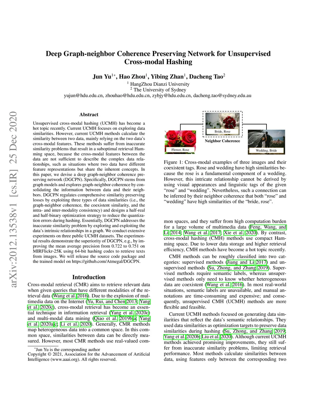 Unsupervised cross-modal hashing (UCMH) has become a hot topic recently. Current UCMH focuses on exploring data similarities. However, current UCMH methods calculate the similarity between two data, mainly relying on the two data's cross-modal features. These methods suffer from inaccurate similarity problems that result in a suboptimal retrieval Hamming space, because the cross-modal features between the data are not sufficient to describe the complex data relationships, such as situations where two data have different feature representations but share the inherent concepts. In this paper, we devise a deep graph-neighbor coherence preserving network (DGCPN). Specifically, DGCPN stems from graph models and explores graph-neighbor coherence by consolidating the information between data and their neighbors. DGCPN regulates comprehensive similarity preserving losses by exploiting three types of data similarities (i.e., the graph-neighbor coherence, the coexistent similarity, and the intra- and inter-modality consistency) and designs a half-real and half-binary optimization strategy to reduce the quantization errors during hashing. Essentially, DGCPN addresses the inaccurate similarity problem by exploring and exploiting the data's intrinsic relationships in a graph. We conduct extensive experiments on three public UCMH datasets. The experimental results demonstrate the superiority of DGCPN, e.g., by improving the mean average precision from 0.722 to 0.751 on MIRFlickr-25K using 64-bit hashing codes to retrieve texts from images. We will release the source code package and the trained model on https://github.com/Atmegal/DGCPN.