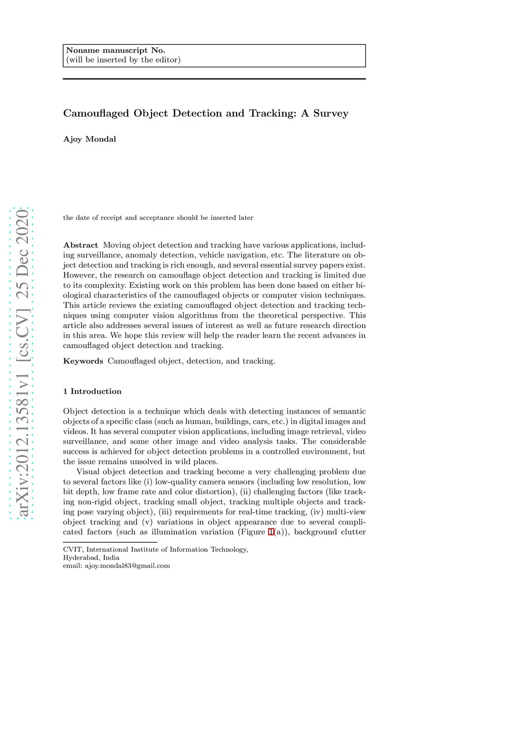 Camouflaged Object Detection and Tracking: A Survey