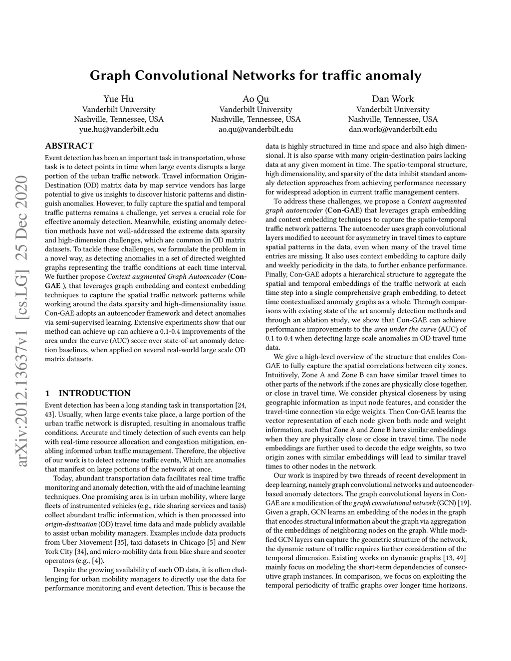 Graph Convolutional Networks for traffic anomaly