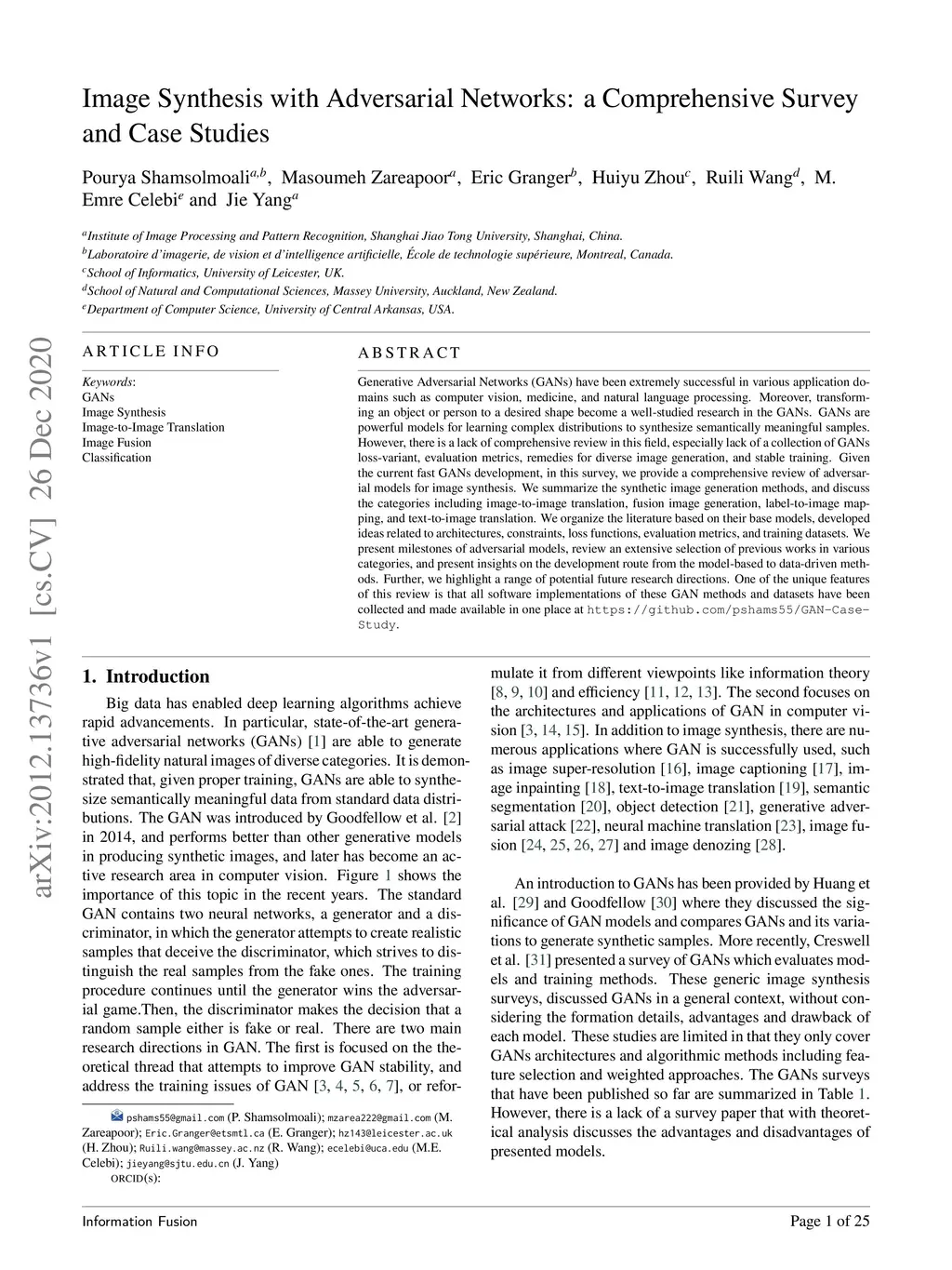 Generative Adversarial Networks (GANs) have been extremely successful in various application domains such as computer vision, medicine, and natural language processing. Moreover, transforming an object or person to a desired shape become a well-studied research in the GANs. GANs are powerful models for learning complex distributions to synthesize semantically meaningful samples. However, there is a lack of comprehensive review in this field, especially lack of a collection of GANs loss-variant, evaluation metrics, remedies for diverse image generation, and stable training. Given the current fast GANs development, in this survey, we provide a comprehensive review of adversarial models for image synthesis. We summarize the synthetic image generation methods, and discuss the categories including image-to-image translation, fusion image generation, label-to-image mapping, and text-to-image translation. We organize the literature based on their base models, developed ideas related to architectures, constraints, loss functions, evaluation metrics, and training datasets. We present milestones of adversarial models, review an extensive selection of previous works in various categories, and present insights on the development route from the model-based to data-driven methods. Further, we highlight a range of potential future research directions. One of the unique features of this review is that all software implementations of these GAN methods and datasets have been collected and made available in one place at https://github.com/pshams55/GAN-Case-Study.