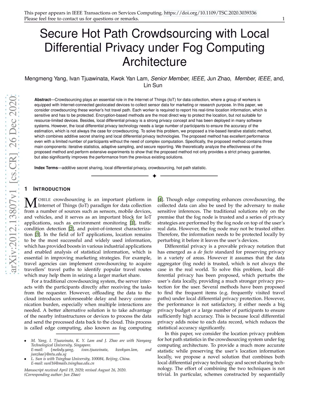 Secure Hot Path Crowdsourcing with Local Differential Privacy under Fog