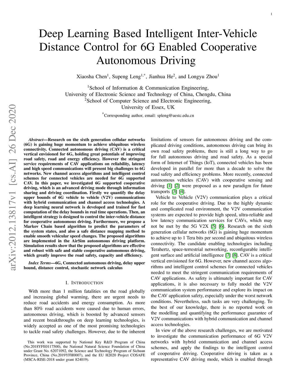 Deep Learning Based Intelligent Inter-Vehicle Distance Control for 6G
