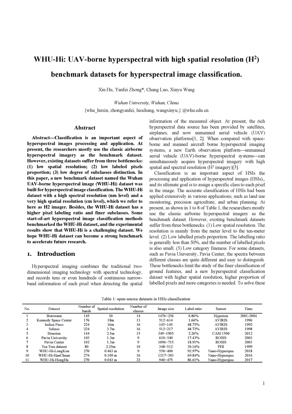 WHU-Hi: UAV-borne hyperspectral with high spatial resolution (H2)