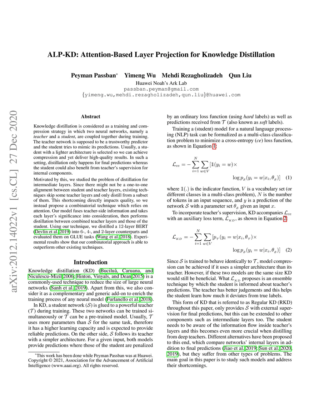 ALP-KD: Attention-Based Layer Projection for Knowledge Distillation