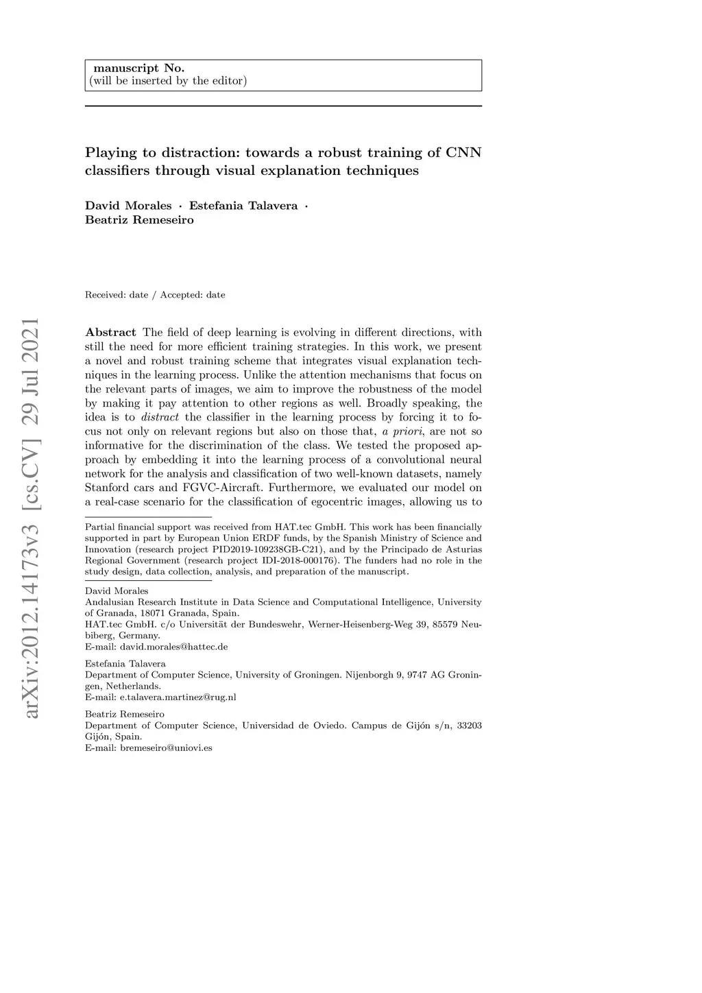 The field of deep learning is evolving in different directions, with still the need for more efficient training strategies. In this work, we present a novel and robust training scheme that integrates visual explanation techniques in the learning process. Unlike the attention mechanisms that focus on the relevant parts of images, we aim to improve the robustness of the model by making it pay attention to other regions as well. Broadly speaking, the idea is to distract the classifier in the learning process to force it to focus not only on relevant regions but also on those that, a priori, are not so informative for the discrimination of the class. We tested the proposed approach by embedding it into the learning process of a convolutional neural network for the analysis and classification of two well-known datasets, namely Stanford cars and FGVC-Aircraft. Furthermore, we evaluated our model on a real-case scenario for the classification of egocentric images, allowing us to obtain relevant information about peoples' lifestyles. In particular, we work on the challenging EgoFoodPlaces dataset, achieving state-of-the-art results with a lower level of complexity. The obtained results indicate the suitability of our proposed training scheme for image classification, improving the robustness of the final model.