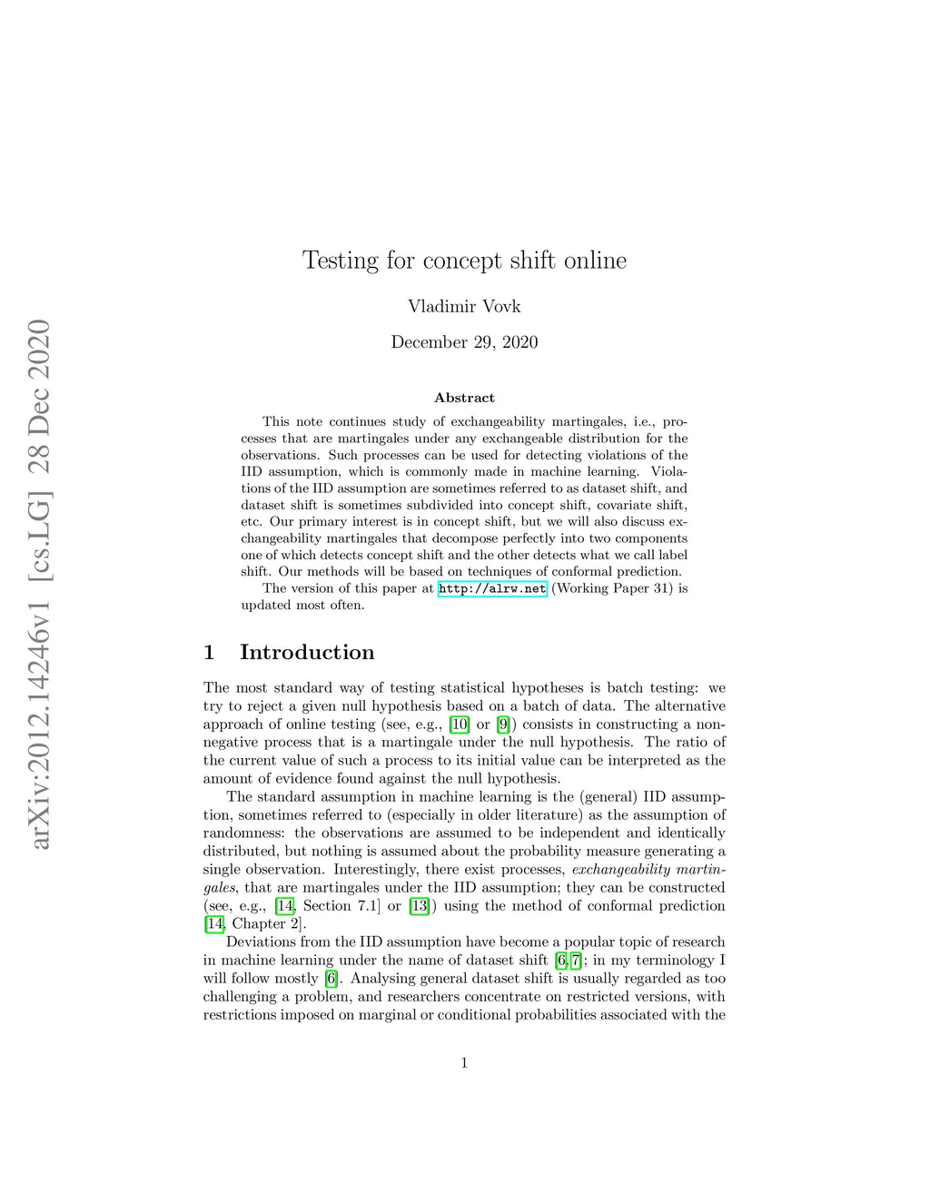 This note continues study of exchangeability martingales, i.e., processes that are martingales under any exchangeable distribution for the observations. Such processes can be used for detecting violations of the IID assumption, which is commonly made in machine learning. Violations of the IID assumption are sometimes referred to as dataset shift, and dataset shift is sometimes subdivided into concept shift, covariate shift, etc. Our primary interest is in concept shift, but we will also discuss exchangeability martingales that decompose perfectly into two components one of which detects concept shift and the other detects what we call label shift. Our methods will be based on techniques of conformal prediction.