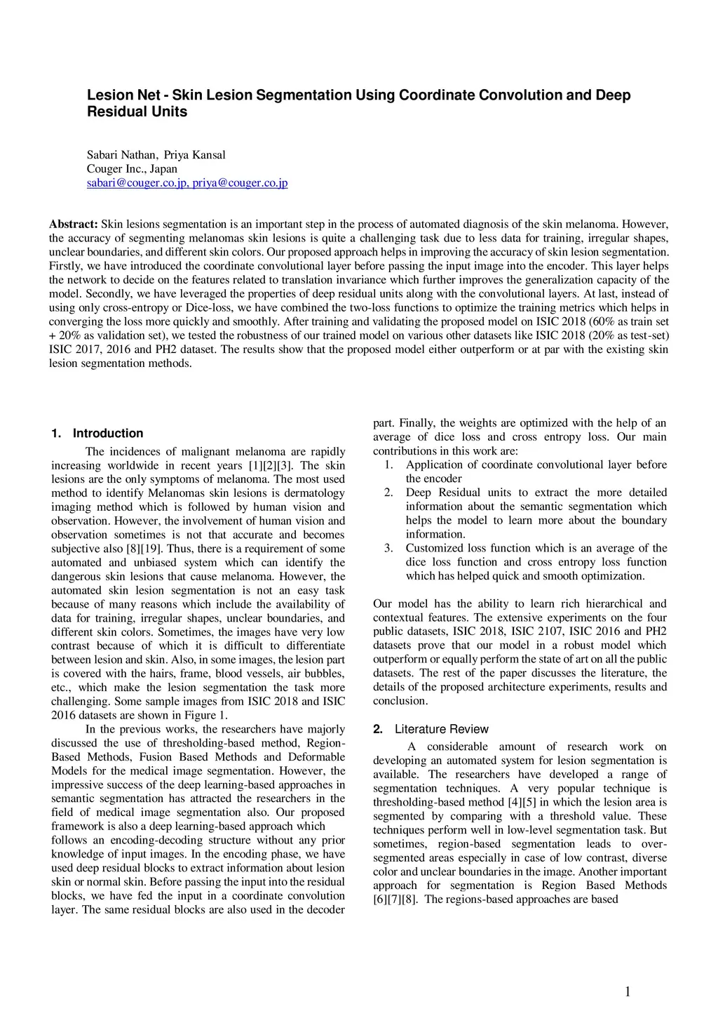 Lesion Net -- Skin Lesion Segmentation Using Coordinate Convolution and