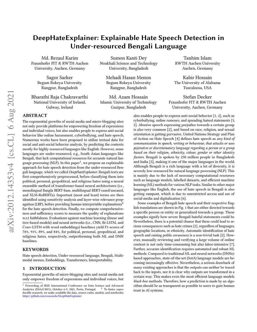 DeepHateExplainer: Explainable Hate Speech Detection in Under-resourced
