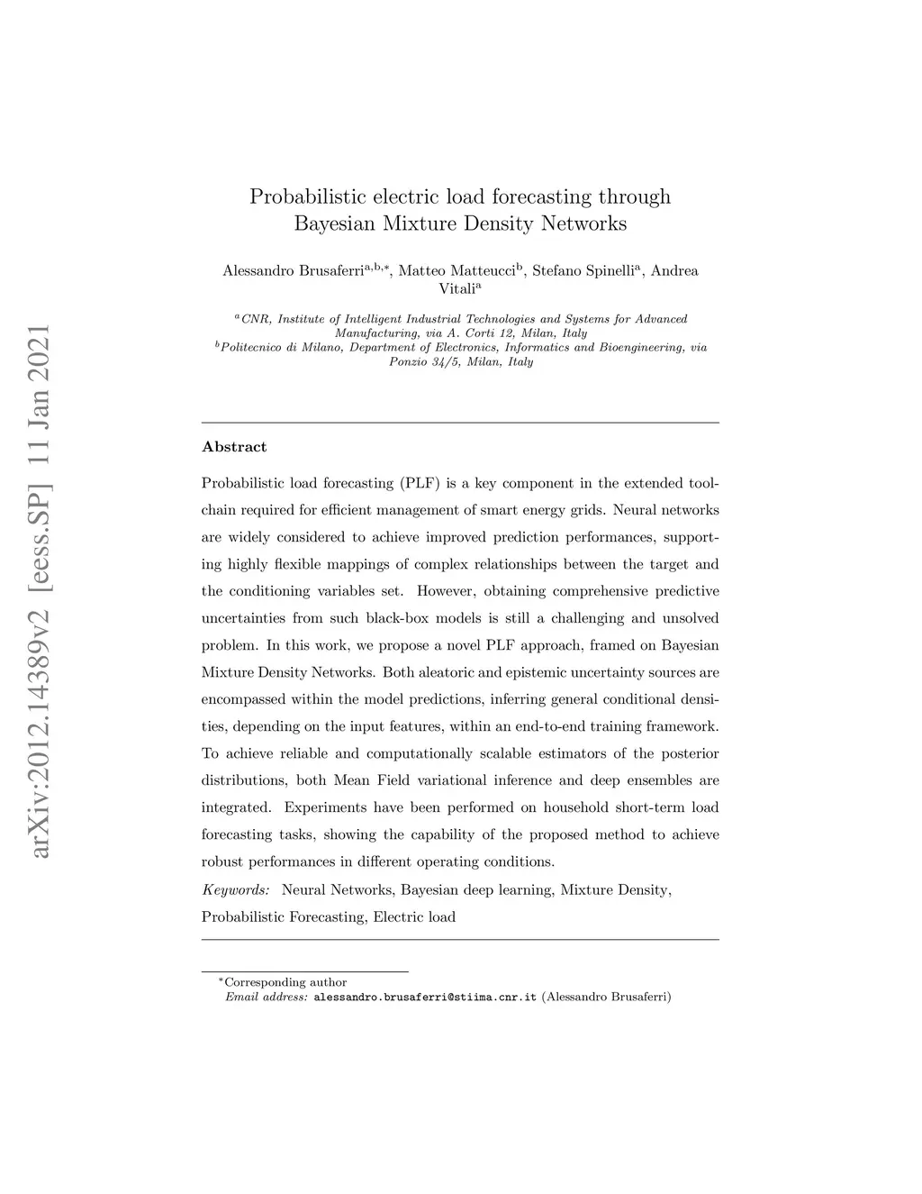 Probabilistic electric load forecasting through Bayesian Mixture Density