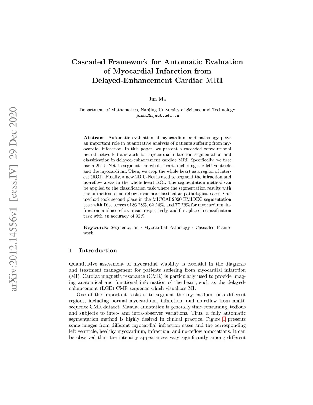 Cascaded Framework for Automatic Evaluation of Myocardial Infarction