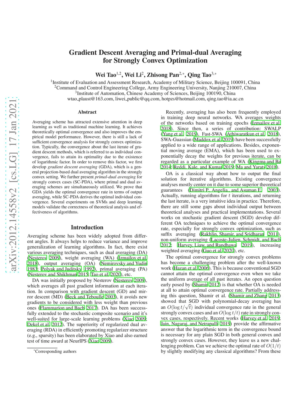 Gradient Descent Averaging and Primal-dual Averaging for Strongly Convex
