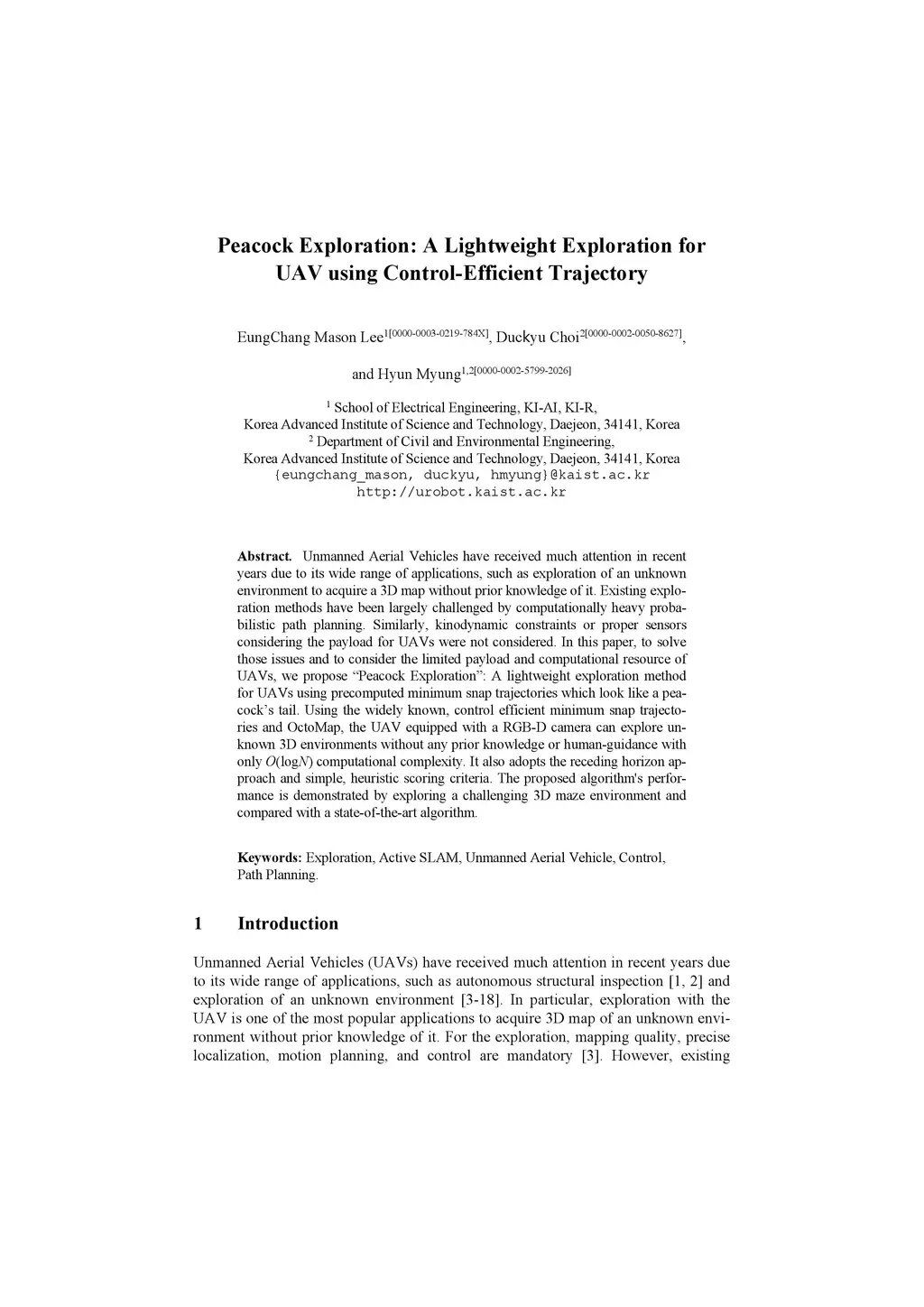 Peacock Exploration: A Lightweight Exploration for UAV using