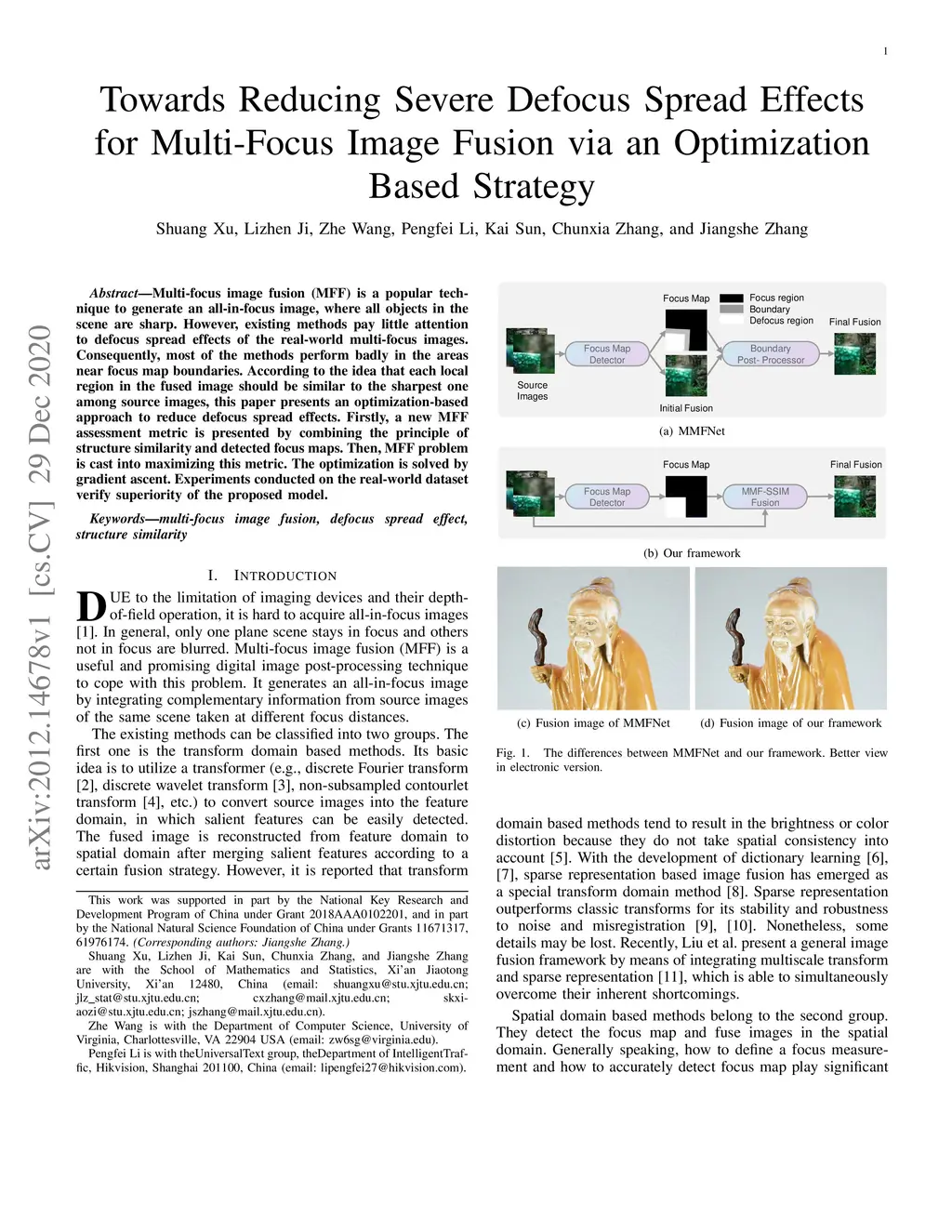 Multi-focus image fusion (MFF) is a popular technique to generate an all-in-focus image, where all objects in the scene are sharp. However, existing methods pay little attention to defocus spread effects of the real-world multi-focus images. Consequently, most of the methods perform badly in the areas near focus map boundaries. According to the idea that each local region in the fused image should be similar to the sharpest one among source images, this paper presents an optimization-based approach to reduce defocus spread effects. Firstly, a new MFF assessmentmetric is presented by combining the principle of structure similarity and detected focus maps. Then, MFF problem is cast into maximizing this metric. The optimization is solved by gradient ascent. Experiments conducted on the real-world dataset verify superiority of the proposed model. The codes are available at https://github.com/xsxjtu/MFF-SSIM.