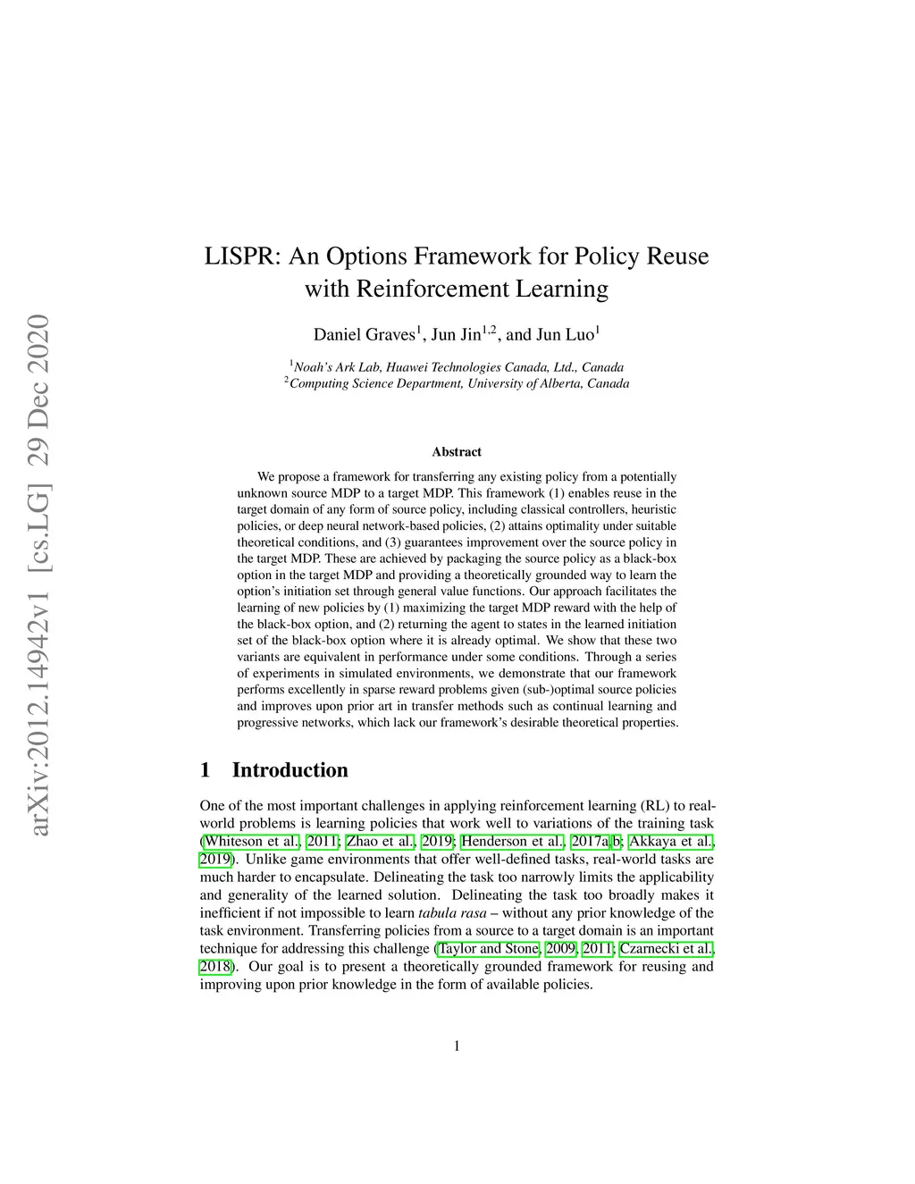 LISPR: An Options Framework for Policy Reuse with Reinforcement Learning