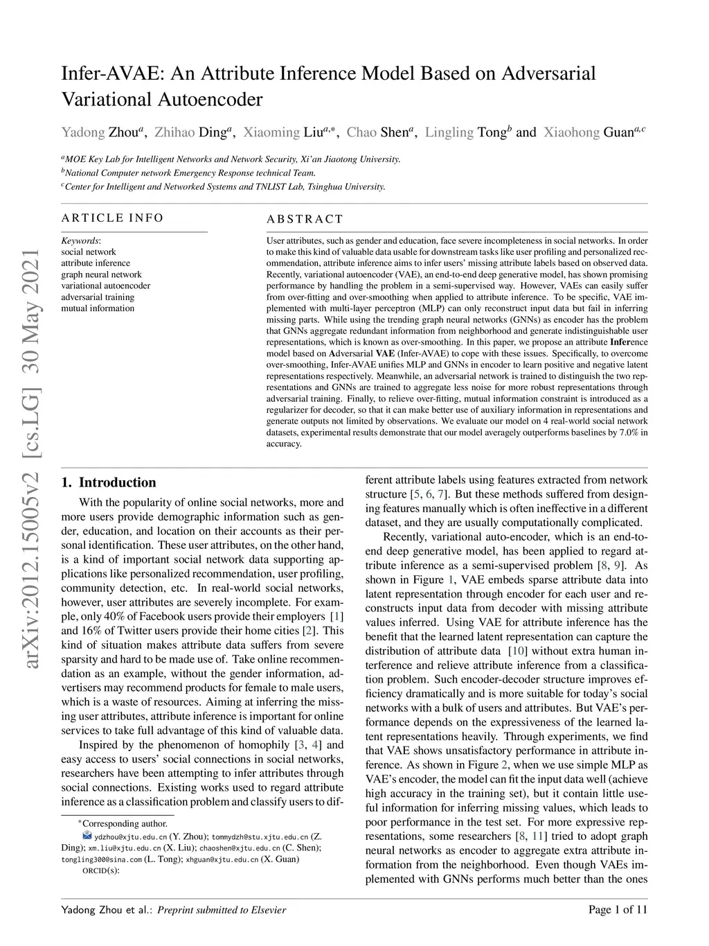 Infer-AVAE: An Attribute Inference Model Based on Adversarial