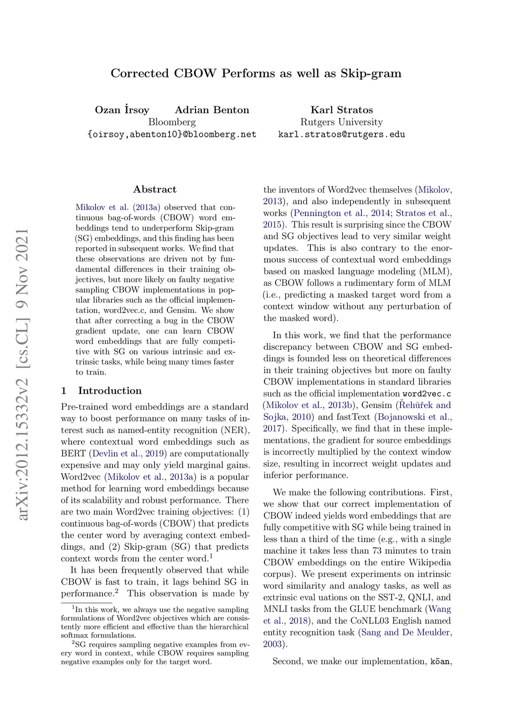 Mikolov et al. (2013a) observed that continuous bag-of-words (CBOW) word embeddings tend to underperform Skip-gram (SG) embeddings, and this finding has been reported in subsequent works. We find that these observations are driven not by fundamental differences in their training objectives, but more likely on faulty negative sampling CBOW implementations in popular libraries such as the official implementation, word2vec.c, and Gensim. We show that after correcting a bug in the CBOW gradient update, one can learn CBOW word embeddings that are fully competitive with SG on various intrinsic and extrinsic tasks, while being many times faster to train.