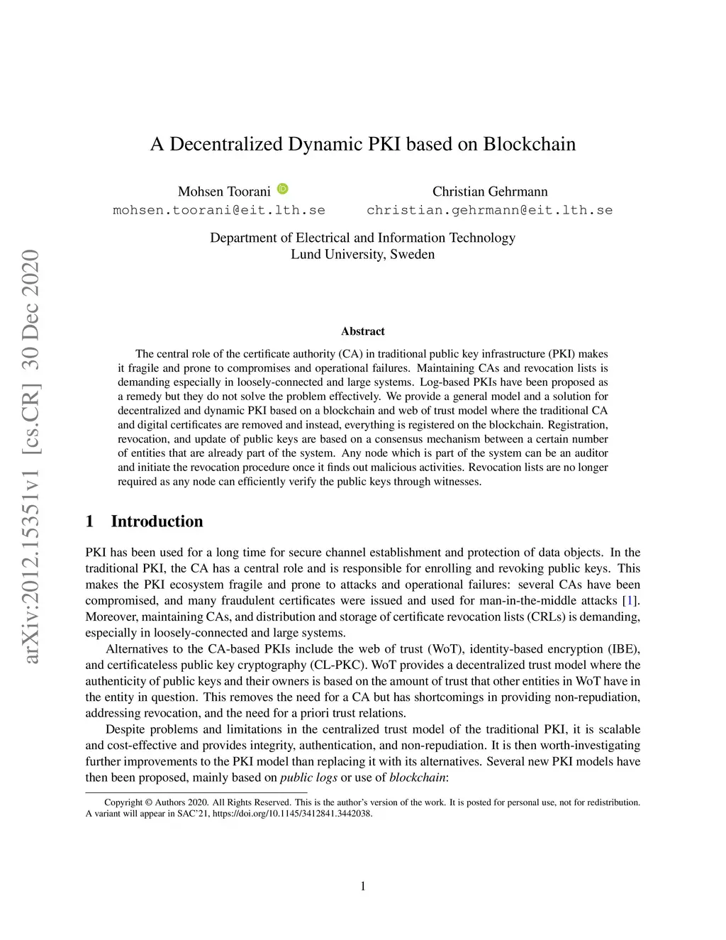 A Decentralized Dynamic PKI based on Blockchain