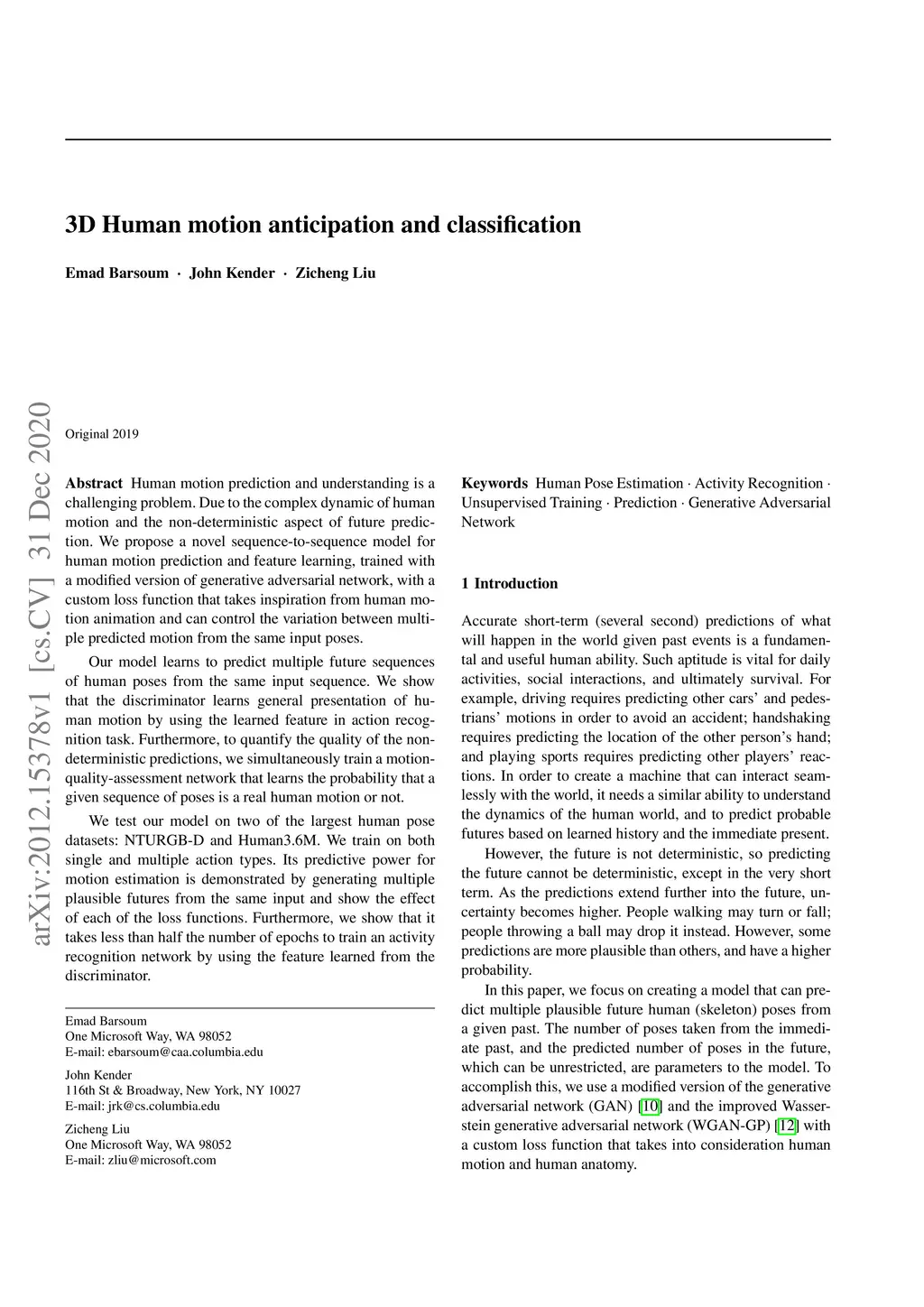 3D Human motion anticipation and classification