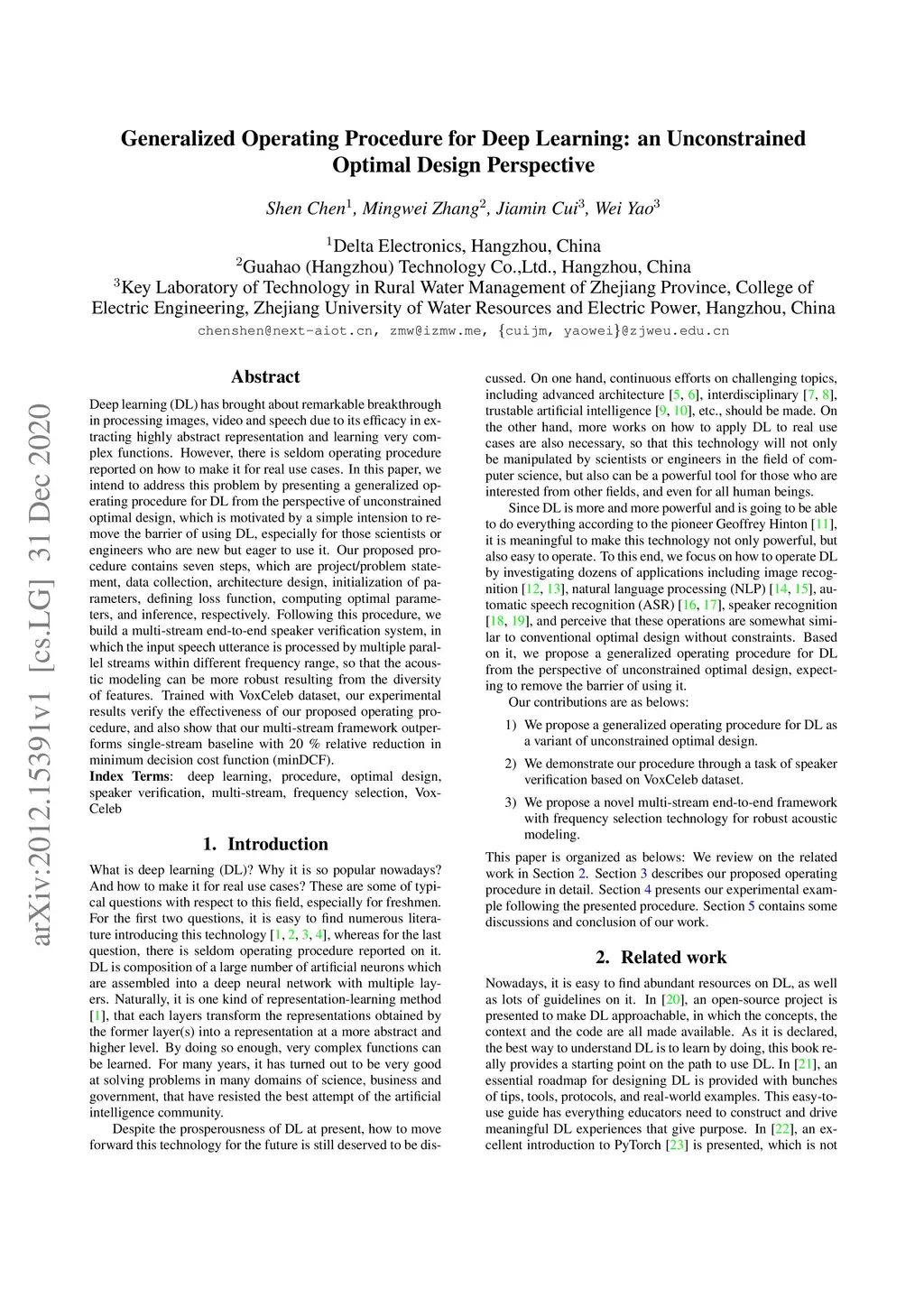 Deep learning (DL) has brought about remarkable breakthrough in processing images, video and speech due to its efficacy in extracting highly abstract representation and learning very complex functions. However, there is seldom operating procedure reported on how to make it for real use cases. In this paper, we intend to address this problem by presenting a generalized operating procedure for DL from the perspective of unconstrained optimal design, which is motivated by a simple intension to remove the barrier of using DL, especially for those scientists or engineers who are new but eager to use it. Our proposed procedure contains seven steps, which are project/problem statement, data collection, architecture design, initialization of parameters, defining loss function, computing optimal parameters, and inference, respectively. Following this procedure, we build a multi-stream end-to-end speaker verification system, in which the input speech utterance is processed by multiple parallel streams within different frequency range, so that the acoustic modeling can be more robust resulting from the diversity of features. Trained with VoxCeleb dataset, our experimental results verify the effectiveness of our proposed operating procedure, and also show that our multi-stream framework outperforms single-stream baseline with 20 % relative reduction in minimum decision cost function (minDCF).