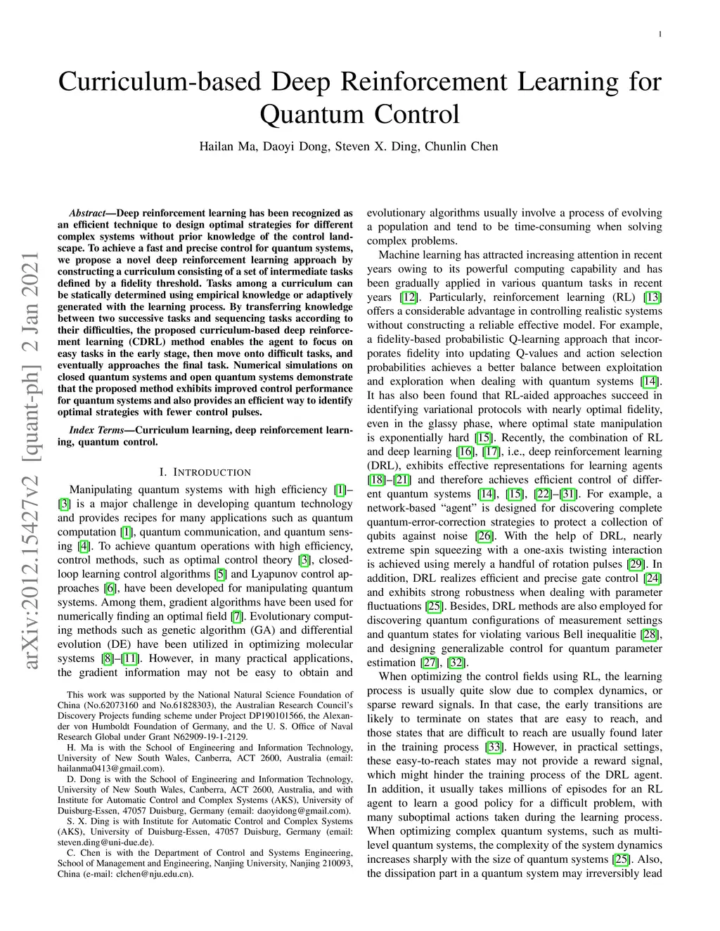 Curriculum-based Deep Reinforcement Learning for Quantum Control