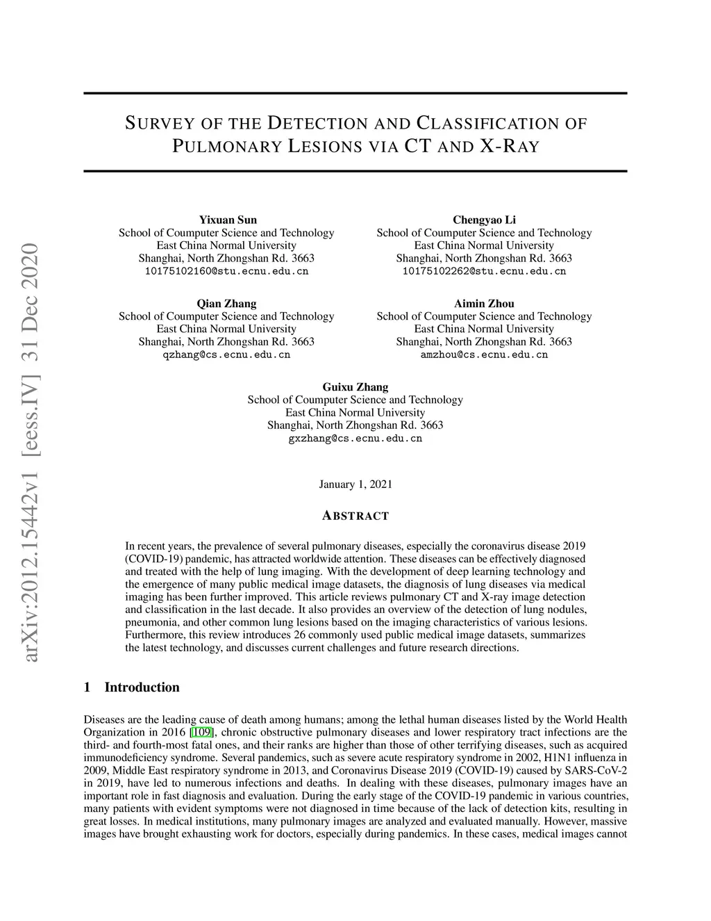 In recent years, the prevalence of several pulmonary diseases, especially the coronavirus disease 2019 (COVID-19) pandemic, has attracted worldwide attention. These diseases can be effectively diagnosed and treated with the help of lung imaging. With the development of deep learning technology and the emergence of many public medical image datasets, the diagnosis of lung diseases via medical imaging has been further improved. This article reviews pulmonary CT and X-ray image detection and classification in the last decade. It also provides an overview of the detection of lung nodules, pneumonia, and other common lung lesions based on the imaging characteristics of various lesions. Furthermore, this review introduces 26 commonly used public medical image datasets, summarizes the latest technology, and discusses current challenges and future research directions.