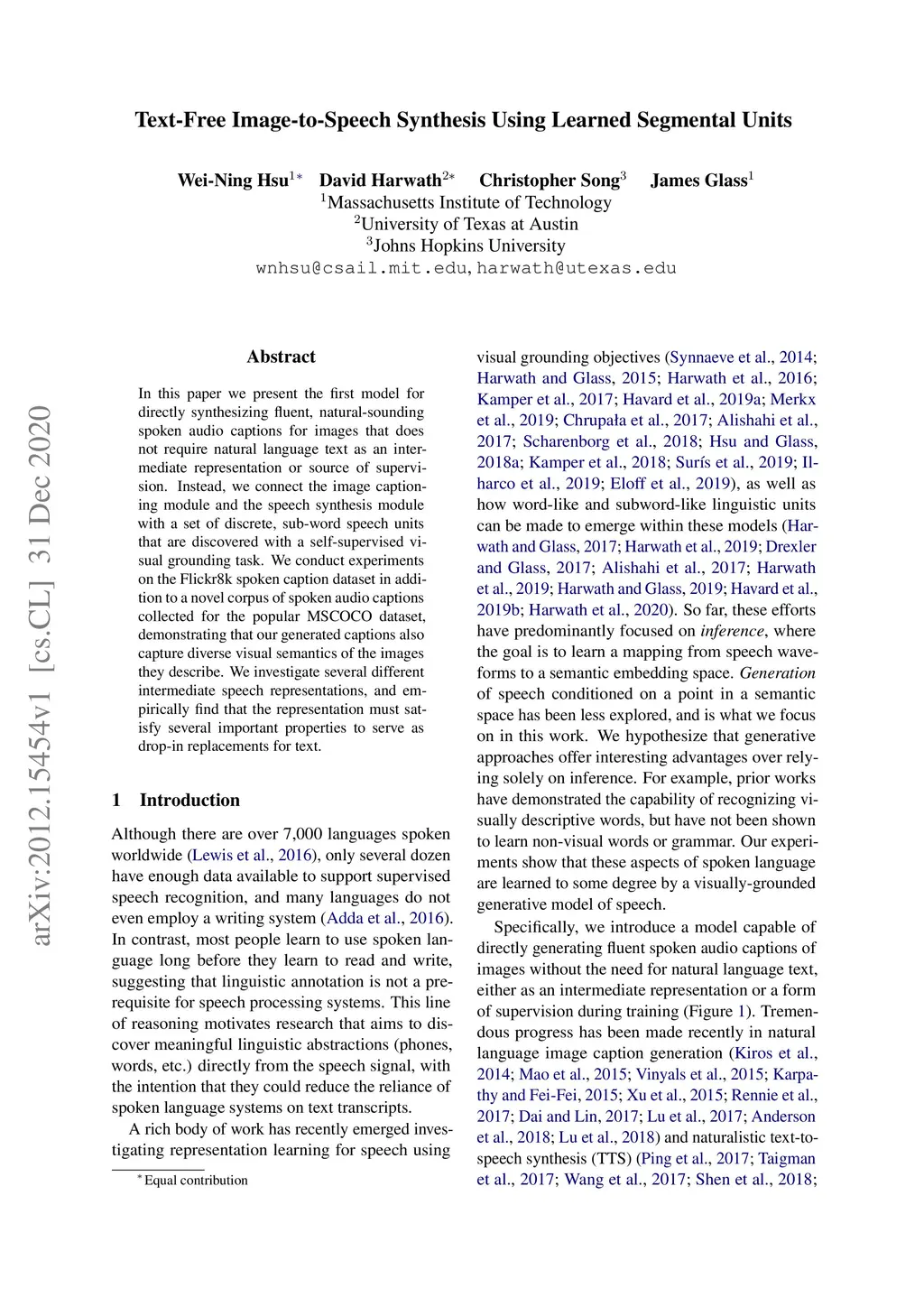 Text-Free Image-to-Speech Synthesis Using Learned Segmental Units