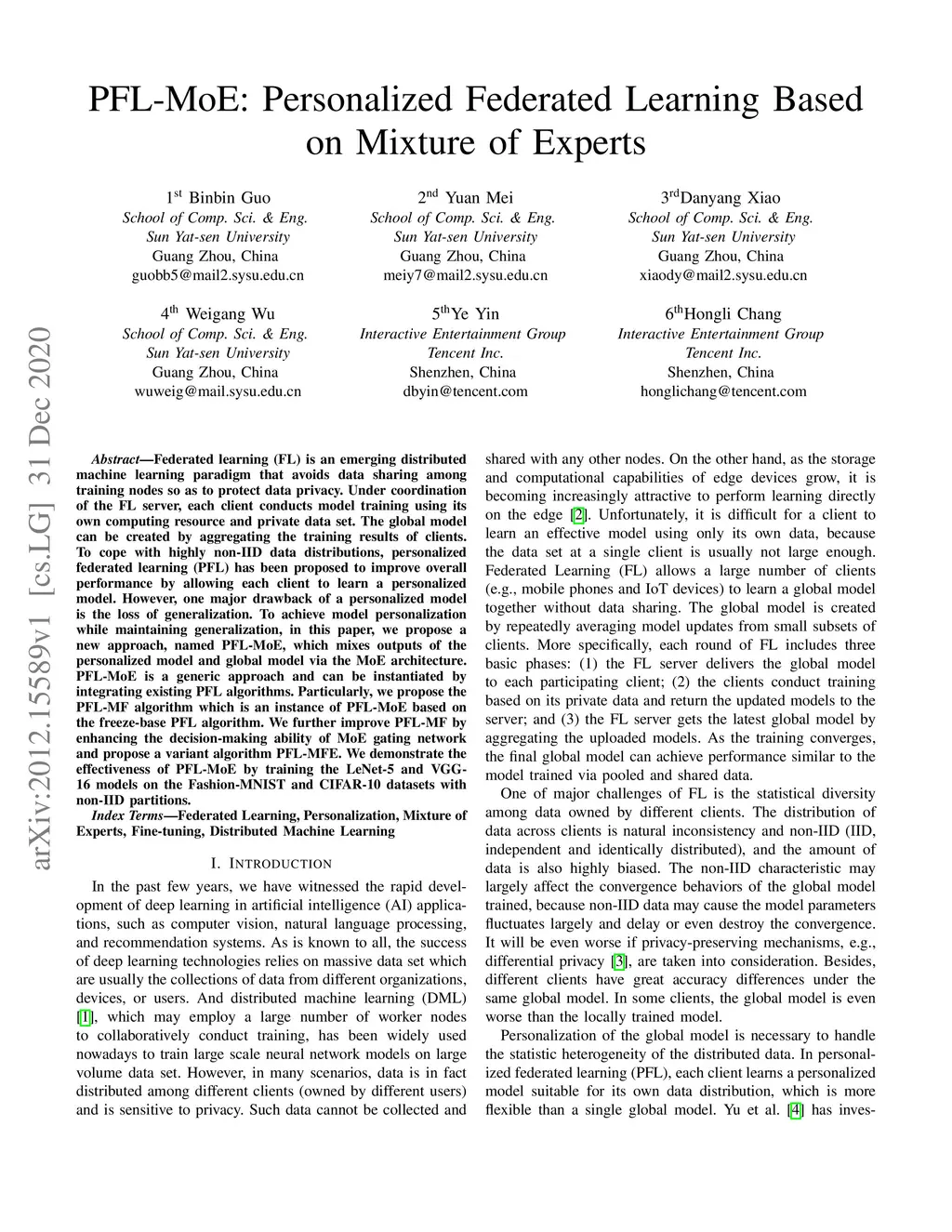 PFL-MoE: Personalized Federated Learning Based on Mixture of Experts