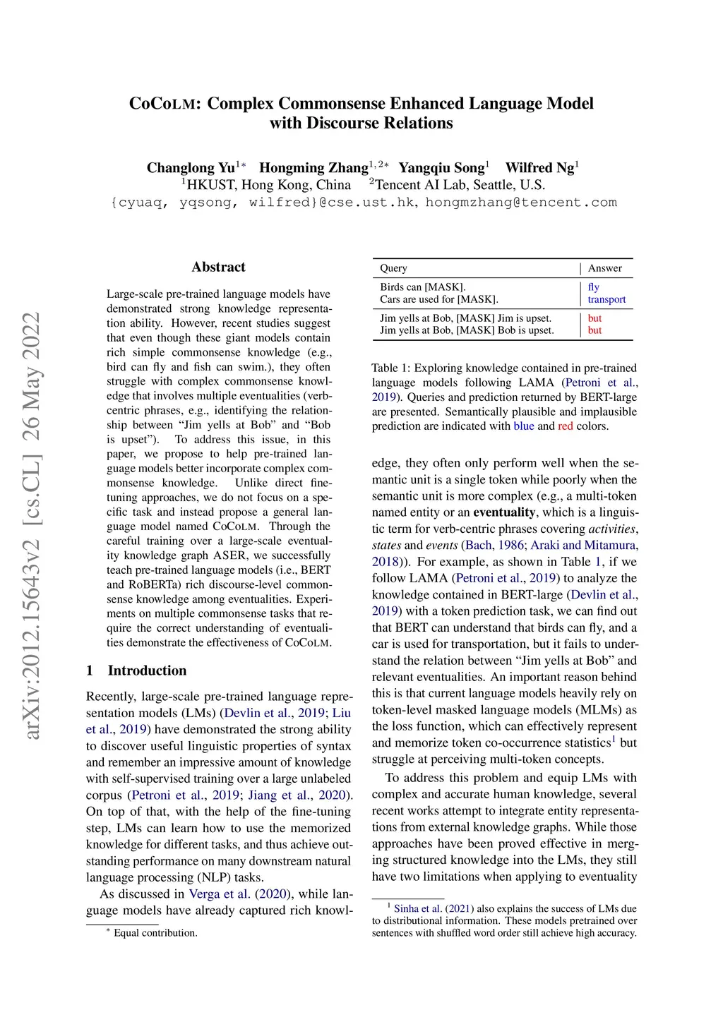 CoCoLM: COmplex COmmonsense Enhanced Language Model with Discourse