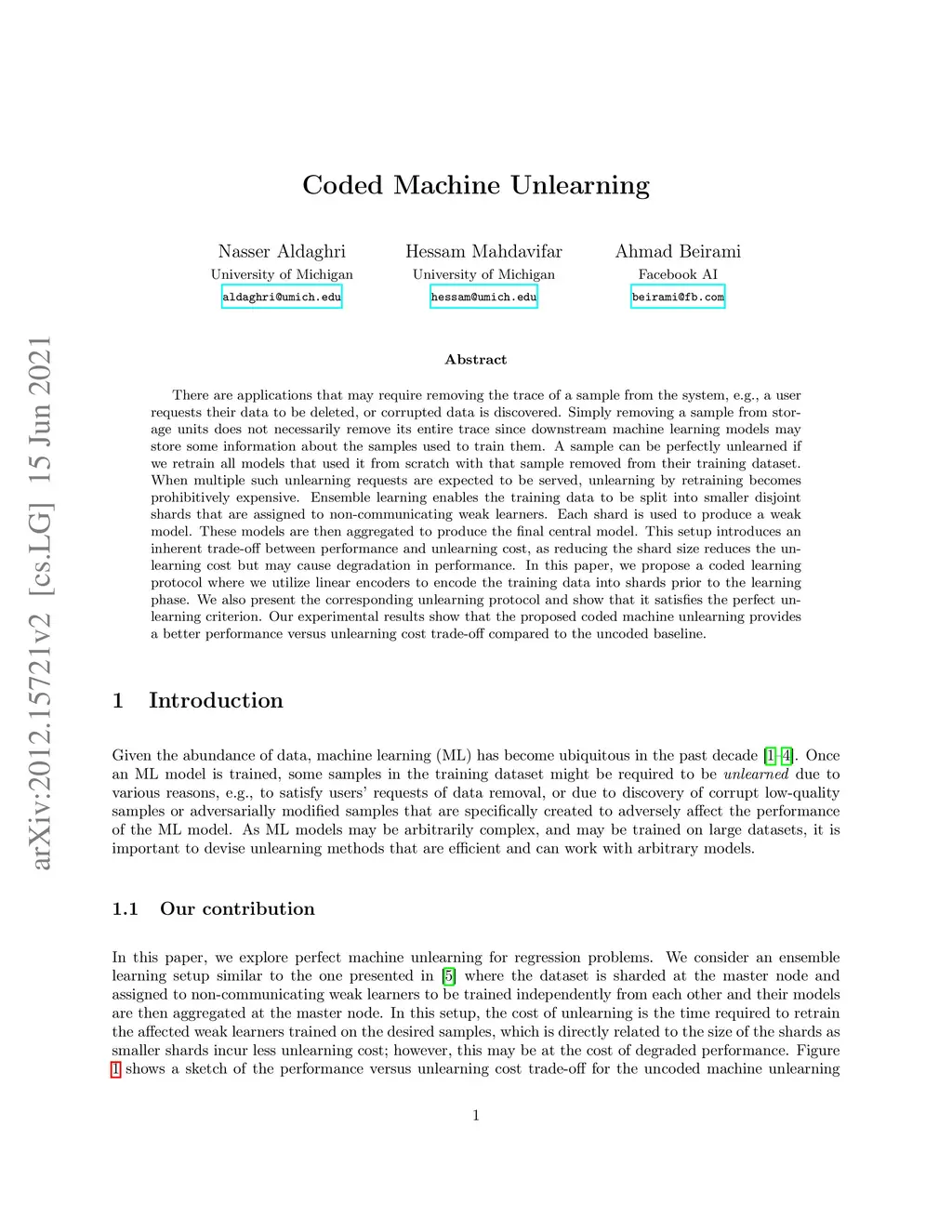 Coded Machine Unlearning