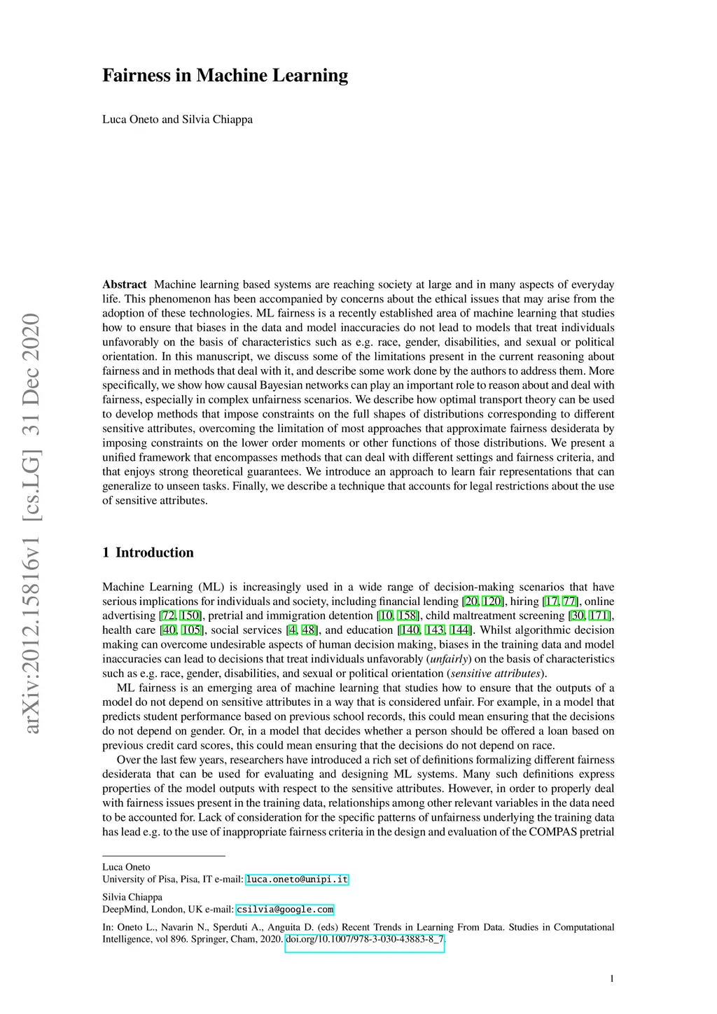 Machine learning based systems are reaching society at large and in many aspects of everyday life. This phenomenon has been accompanied by concerns about the ethical issues that may arise from the adoption of these technologies. ML fairness is a recently established area of machine learning that studies how to ensure that biases in the data and model inaccuracies do not lead to models that treat individuals unfavorably on the basis of characteristics such as e.g. race, gender, disabilities, and sexual or political orientation. In this manuscript, we discuss some of the limitations present in the current reasoning about fairness and in methods that deal with it, and describe some work done by the authors to address them. More specifically, we show how causal Bayesian networks can play an important role to reason about and deal with fairness, especially in complex unfairness scenarios. We describe how optimal transport theory can be used to develop methods that impose constraints on the full shapes of distributions corresponding to different sensitive attributes, overcoming the limitation of most approaches that approximate fairness desiderata by imposing constraints on the lower order moments or other functions of those distributions. We present a unified framework that encompasses methods that can deal with different settings and fairness criteria, and that enjoys strong theoretical guarantees. We introduce an approach to learn fair representations that can generalize to unseen tasks. Finally, we describe a technique that accounts for legal restrictions about the use of sensitive attributes.