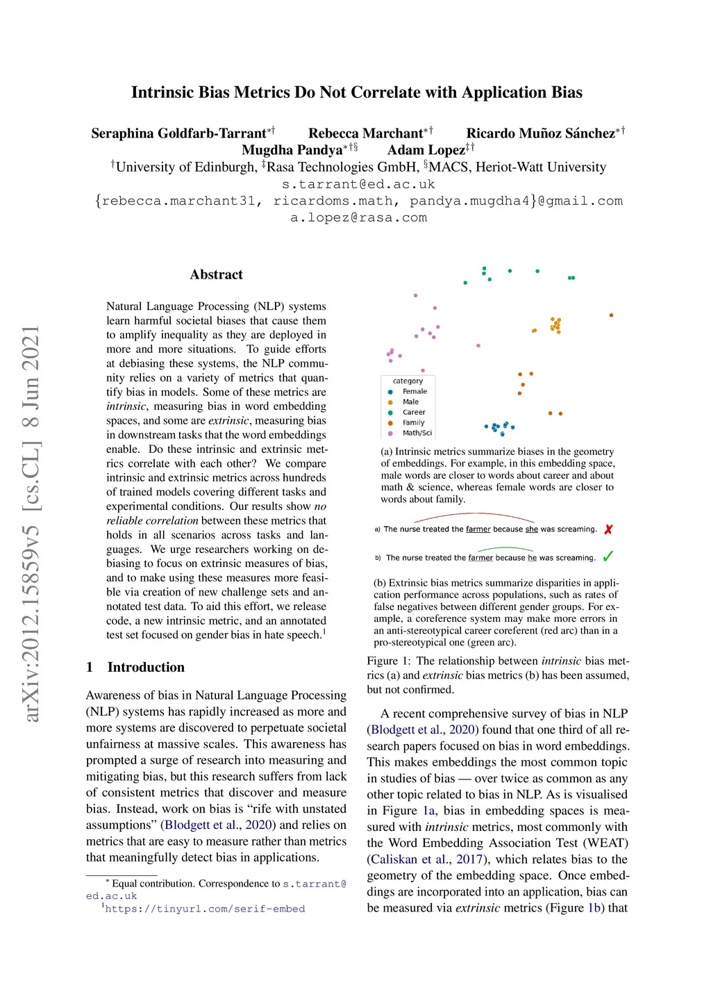 Intrinsic Bias Metrics Do Not Correlate with Application Bias