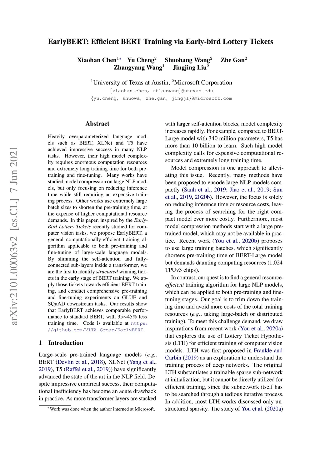 EarlyBERT: Efficient BERT Training via Early-bird Lottery Tickets