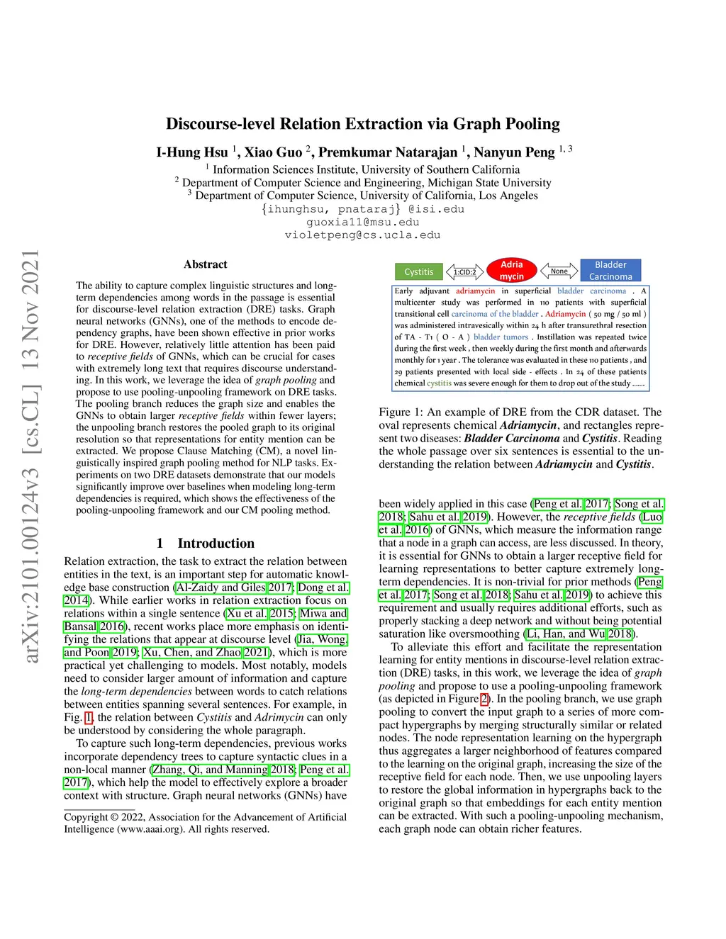 Discourse-level Relation Extraction via Graph Pooling