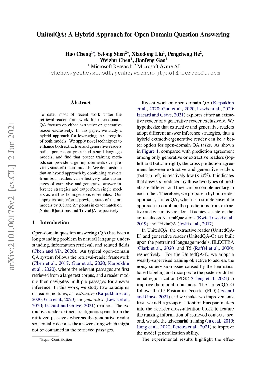 UnitedQA: A Hybrid Approach for Open Domain Question Answering