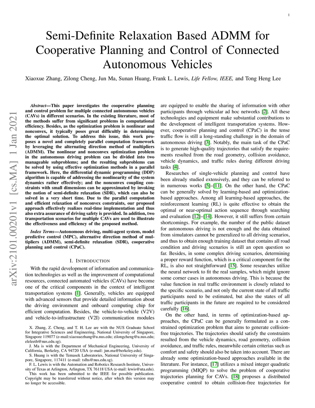 This paper investigates the cooperative planning and control problem for multiple connected autonomous vehicles (CAVs) in different scenarios. In the existing literature, most of the methods suffer from significant problems in computational efficiency. Besides, as the optimization problem is nonlinear and nonconvex, it typically poses great difficultly in determining the optimal solution. To address this issue, this work proposes a novel and completely parallel computation framework by leveraging the alternating direction method of multipliers (ADMM). The nonlinear and nonconvex optimization problem in the autonomous driving problem can be divided into two manageable subproblems; and the resulting subproblems can be solved by using effective optimization methods in a parallel framework. Here, the differential dynamic programming (DDP) algorithm is capable of addressing the nonlinearity of the system dynamics rather effectively; and the nonconvex coupling constraints with small dimensions can be approximated by invoking the notion of semi-definite relaxation (SDR), which can also be solved in a very short time. Due to the parallel computation and efficient relaxation of nonconvex constraints, our proposed approach effectively realizes real-time implementation and thus also extra assurance of driving safety is provided. In addition, two transportation scenarios for multiple CAVs are used to illustrate the effectiveness and efficiency of the proposed method.