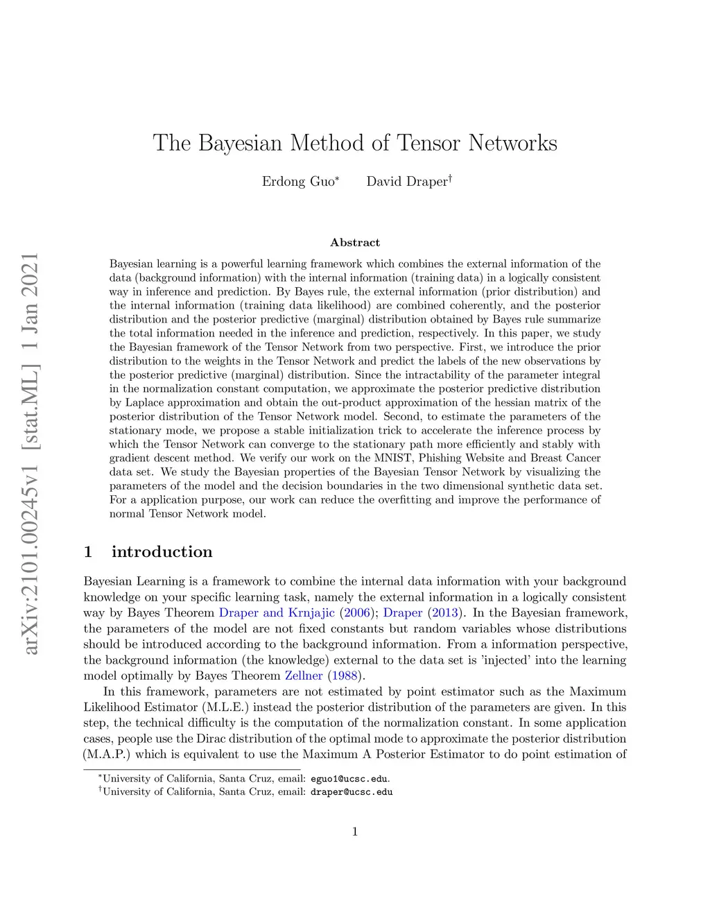 The Bayesian Method of Tensor Networks