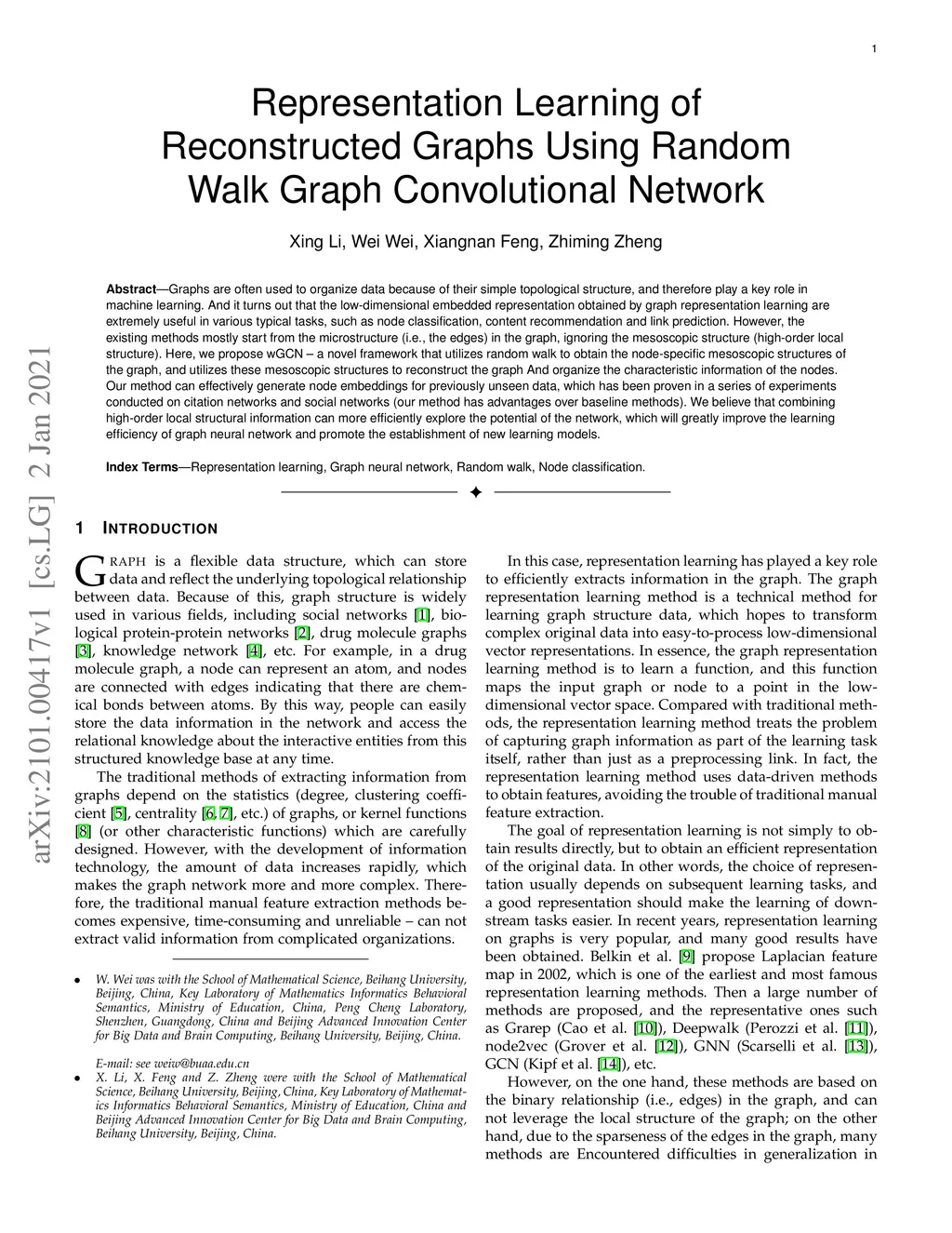 Graphs are often used to organize data because of their simple topological structure, and therefore play a key role in machine learning. And it turns out that the low-dimensional embedded representation obtained by graph representation learning are extremely useful in various typical tasks, such as node classification, content recommendation and link prediction. However, the existing methods mostly start from the microstructure (i.e., the edges) in the graph, ignoring the mesoscopic structure (high-order local structure). Here, we propose wGCN -- a novel framework that utilizes random walk to obtain the node-specific mesoscopic structures of the graph, and utilizes these mesoscopic structures to reconstruct the graph And organize the characteristic information of the nodes. Our method can effectively generate node embeddings for previously unseen data, which has been proven in a series of experiments conducted on citation networks and social networks (our method has advantages over baseline methods). We believe that combining high-order local structural information can more efficiently explore the potential of the network, which will greatly improve the learning efficiency of graph neural network and promote the establishment of new learning models.