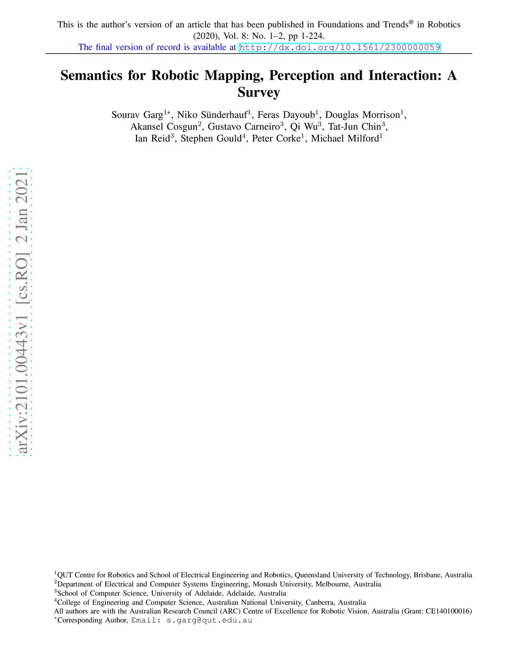 Semantics for Robotic Mapping, Perception and Interaction: A Survey