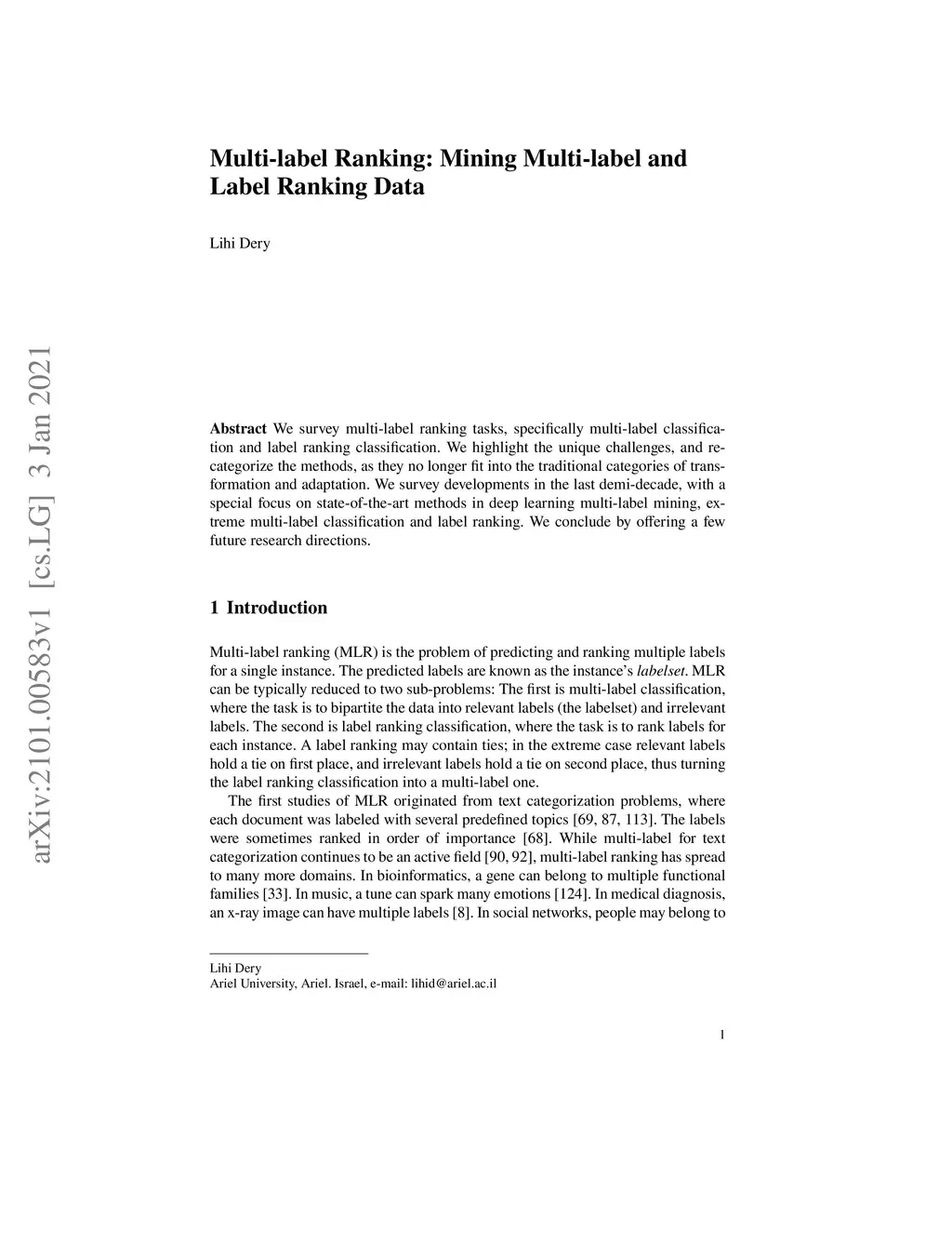 We survey multi-label ranking tasks, specifically multi-label classification and label ranking classification. We highlight the unique challenges, and re-categorize the methods, as they no longer fit into the traditional categories of transformation and adaptation. We survey developments in the last demi-decade, with a special focus on state-of-the-art methods in deep learning multi-label mining, extreme multi-label classification and label ranking. We conclude by offering a few future research directions.
