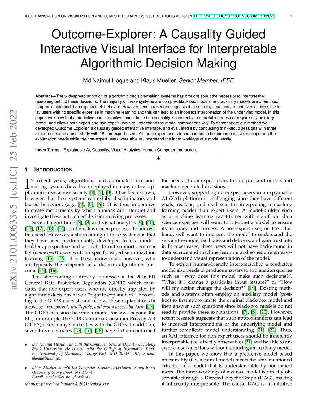 Outcome-Explorer: A Causality Guided Interactive Visual Interface for