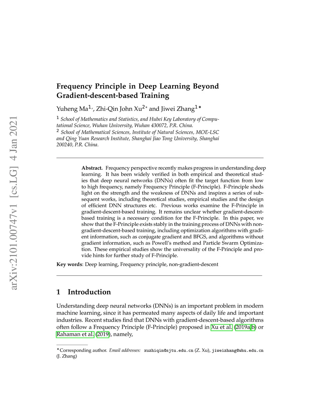 Frequency perspective recently makes progress in understanding deep learning. It has been widely verified in both empirical and theoretical studies that deep neural networks (DNNs) often fit the target function from low to high frequency, namely Frequency Principle (F-Principle). F-Principle sheds light on the strength and the weakness of DNNs and inspires a series of subsequent works, including theoretical studies, empirical studies and the design of efficient DNN structures etc. Previous works examine the F-Principle in gradient-descent-based training. It remains unclear whether gradient-descent-based training is a necessary condition for the F-Principle. In this paper, we show that the F-Principle exists stably in the training process of DNNs with non-gradient-descent-based training, including optimization algorithms with gradient information, such as conjugate gradient and BFGS, and algorithms without gradient information, such as Powell's method and Particle Swarm Optimization. These empirical studies show the universality of the F-Principle and provide hints for further study of F-Principle.