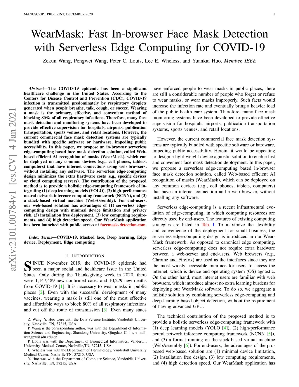 WearMask: Fast In-browser Face Mask Detection with Serverless Edge