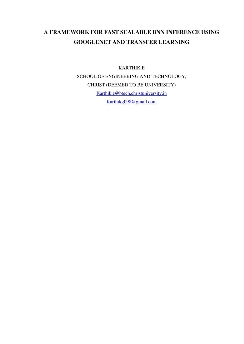 A Framework for Fast Scalable BNN Inference using Googlenet and Transfer
