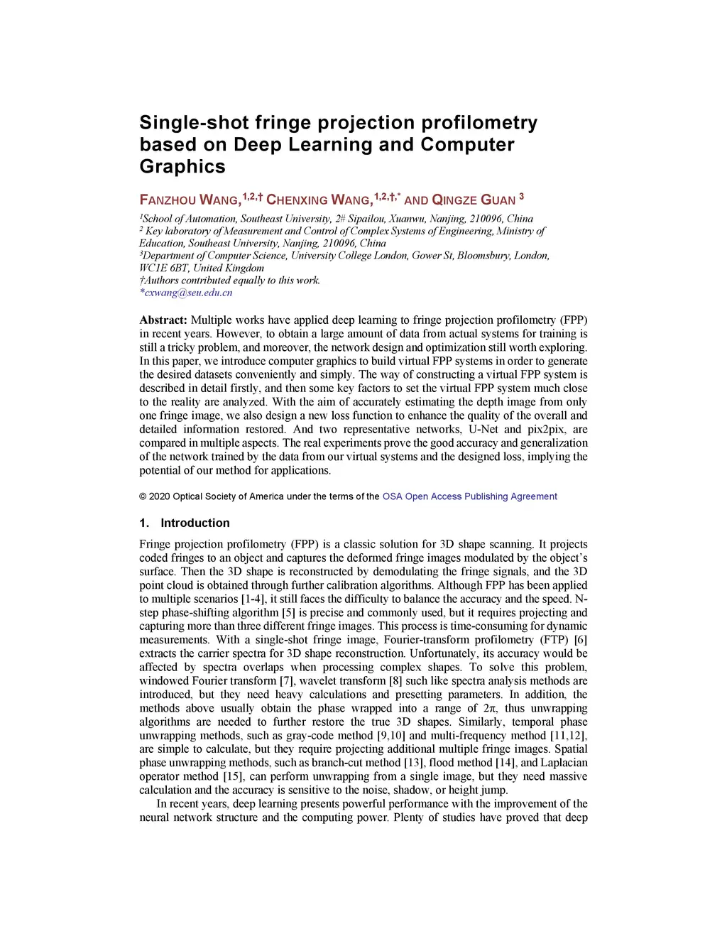 Single-shot fringe projection profilometry based on Deep Learning and