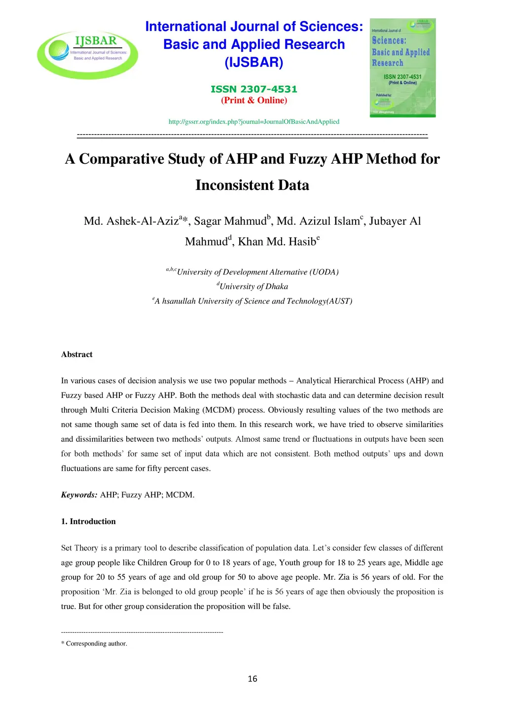 A Comparative Study of AHP and Fuzzy AHP Method for Inconsistent Data