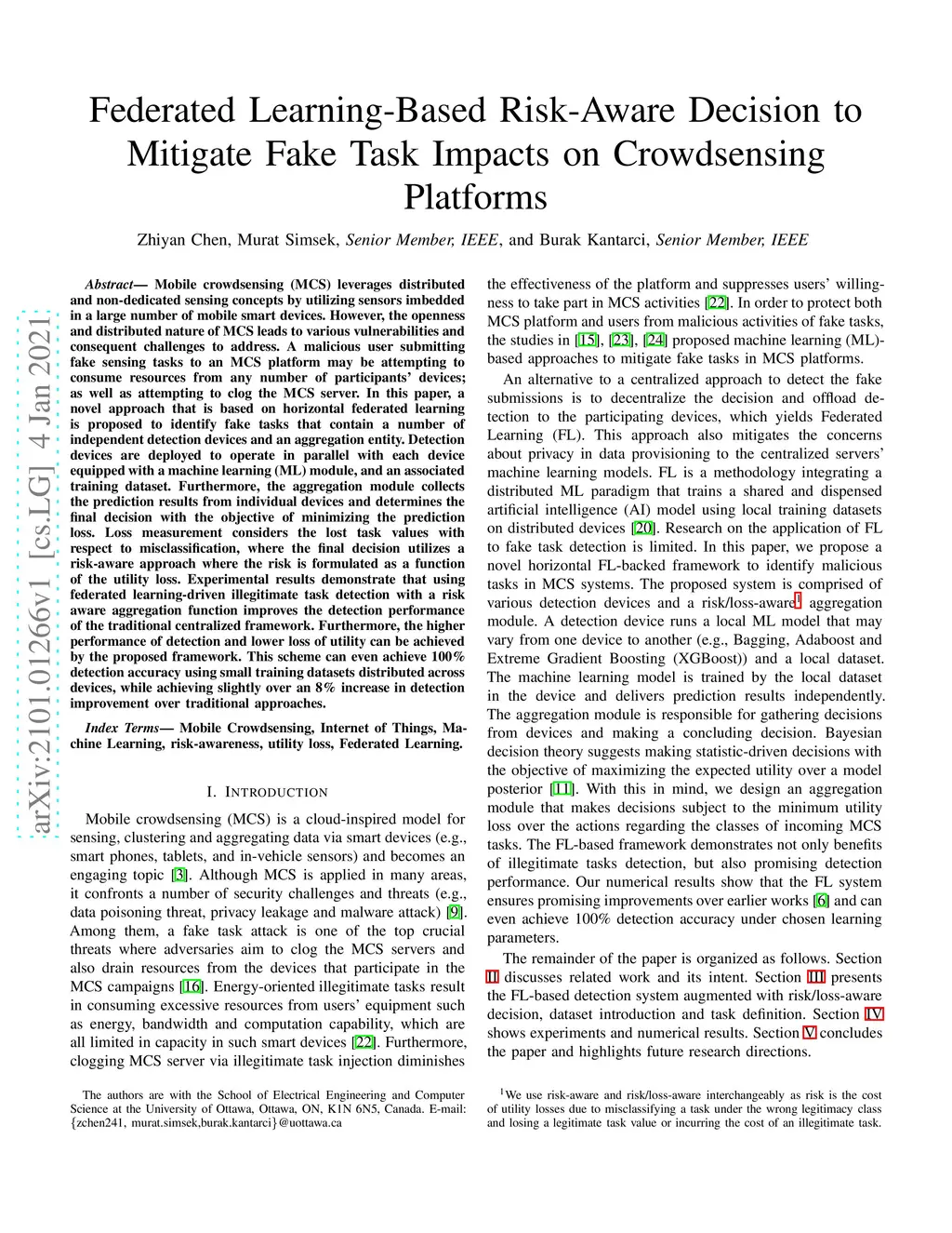 Federated Learning-Based Risk-Aware Decision toMitigate Fake Task